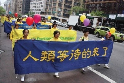 The Largest Parade in Manhattan 组图5:空拍纽约曼哈顿万人游行 http://www.epochtimes.com/gb/16/5/14/n7894198.htm 【大纪元2016年05月14日讯】(大纪元记者卓惠如纽约报导)近万名来自世界各地的部分法轮功学员汇聚纽约,欢庆第17届世界法轮大法日,并于13日在曼哈顿举行盛大游行,除了将法轮大法的祥和美好分享给民众之外,并以横幅揭露中共迫害法轮功的暴行,呼吁大众共同制止迫害,并劝告加入中共党、团、队者,尽快退出此邪恶组织,以有个美好的未来。 游行队伍从联合国公园出发,沿着纽约42大街举行盛大游行。游行队伍分成法轮大法洪传、制止迫害、九评三退等三大方阵。每个部分都以一个天国乐团打头阵,随后以众多的横幅、旗海表达诉求。 2016 Falun Dafa Day Parade |